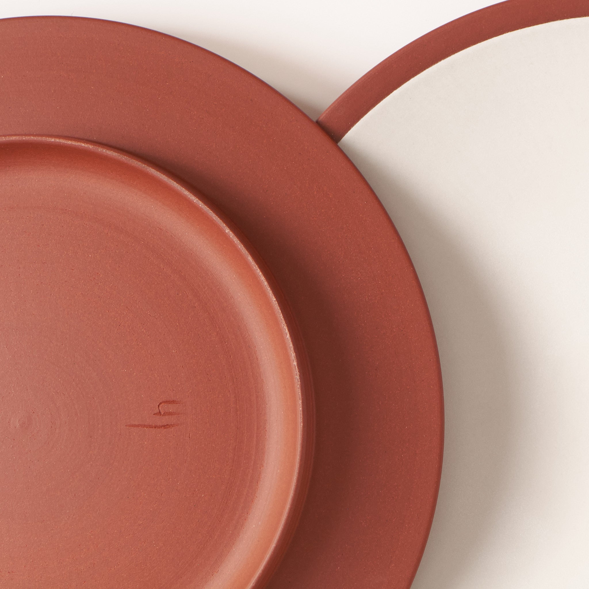 Façonnée à la main au tour de potier dans leur atelier des Cantons-de-l’Est, l’assiette est réalisée en grès rouge provenant des Prairies d’Amérique du Nord.